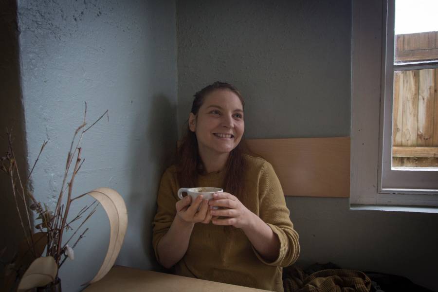 Manu Prigioni enjoying a coffee at Cassiopeia in Katoomba (Photo: Camille Walsh)